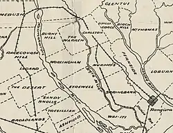 Dixon took a 2,400 hectares (6,000 acres) run on the north bank of the Waimakariri River and called it The Hermitage, but the name changed to Eyrewell.[4] Edward John Eyre was Lieutenant-Governor of New Munster Province from 1848 to 1853 and "well" refers to the hole of 24 metres (80 ft) depth that Dixon dug by hand without reaching groundwater. He later built his homestead nearer to the Eyre River where he had access to groundwater. Unlike other farmers, Dixon freeholded his land and his son, also Marmaduke Dixon, carried on and bought adjacent land from the nearby Burnt Hill and Dagnam runs.[6]