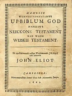 - ^ Only a few dozen of Eliot's 1663 Bible remain in existence, as most copies were destroyed during King Philip's War in 1675–1676.[32]