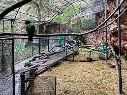The rescue centre is located on the side of the El Galeon ravine[1] in Breña Alta, on the island of La Palma. It has been described as a vertical zoo, with walkways combining cobbled paths and wooden bridges, with walk-through aviaries. It also has a restaurant.[2] It has an area of around 7,000 square metres (75,000 sq ft),[3] with a forest-like environment[1] made with native vegetation.[4]