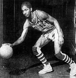 In 1946, Langston was invited to play an exhibition game against the Globetrotters in Oklahoma City. In that game, Haynes led Langston to a 4-point win, catching the eye of team owner Abe Saperstein in the process.[8] He was invited to join the Globetrotters, and, after completing his degree, began his long professional career.[3][9] Prior to joining the Globetrotters, Haynes briefly played for the Kansas City Stars of the Black Professional Basketball League.[5]