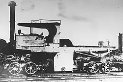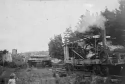 A gala day was held on 15 June 1922 at Marrawah on the occasion of the opening of the steel railway line to within a mile of the township.[15] The branches, however, stayed private property and were operated by the proprietors with their own, sometimes unusual rolling stock. One of the most peculiar locomotives was Harlot a converted Ransomes, Sims & Jefferies steam lorry. Special permission had to be given to drive it to Salmon River on the Marrawah Tramway and extra care was taken due to the type of wheels on the engine but it reached its destination without any serious damage. The journey took a whole day.[16]
