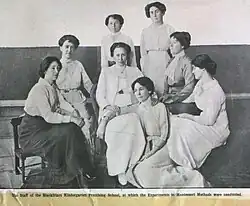In 1912, the New South Wales government sent Simpson to Europe to learn about the Montessori Method of education from Dr. Montessori herself.[3] These principles were practiced at the demonstration school.[4] In 1914, Simpson published her "Report on the Montessori Methods of Education".[5] Simpson became the first female Inspector of Infant Schools for New South Wales in 1917.[6] Simpson was also responsible for the kindergarten section of Blackfriars Demonstration School, part of the Sydney Teachers' College.[1] Her early students included Amy Rowntree, who would carry the kindergarten message on to Tasmania.[7]