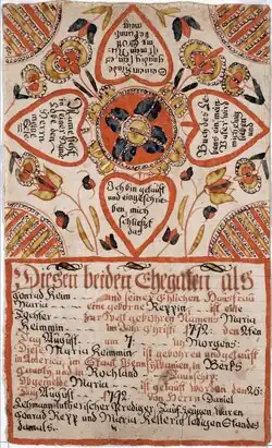 - ^ "Pennsylvania German fraktur, broadsides, and related drawings". Library of Congress. Retrieved Apr 7, 2019.