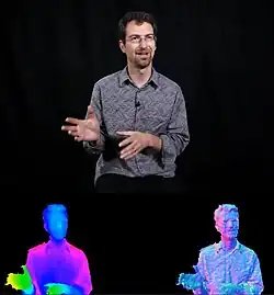 Since 2003, Wattenberg has collaborated with Fernanda Viégas to create interactive works that evoke the joy of "revelation".[29] They have used academic techniques such as history flow to create prints that have been shown in venues such as the New York Museum of Modern Art.[30] The two have also created purely artistic visualizations. For example, the Fleshmap series (2008-2009) portrays aspects of sensuality, and includes work on the web, video, and installations. For example, Fleshmap: Touch provides a collective view of erogenous zones,[31] while Fleshmap: Listen visualizes the language used to describe the body in song lyrics.[32]