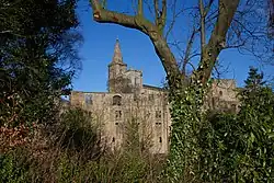 - Sophie (1604-15 November 1626), who married James Pringle of Whytbank in 1622, she was said to have been a maiden of honour to Anne of Denmark, and was the mother of Alexander Pringle. A portrait miniature of Anne of Denmark with rubies and gold chain was kept in the family.[40] Sophie Schöner died on 15 November 1626 and was buried at Melrose Abbey.[41] James Pringle never remarried, his arms are painted on an interior wall of their lodging at Moubray House in Edinburgh.[42]