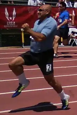 Other than for nagging injuries, he's never stopped running. He's won multiple United States[17] and World Masters Athletics Championships[18] and is still one of the top sprinters in his age group.[19]