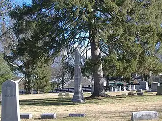 The Martyrs Monument in Midway, located in Midway City Cemetery outside Midway, Kentucky, was placed on the National Register of Historic Places on July 17, 1997, as part of the Civil War Monuments of Kentucky Multiple Property Submission. It honors four Confederate prisoners who were killed due to the standing order of Union General over Kentucky Stephen G. Burbridge, known as Order No. 59, which declared: "Whenever an unarmed Union citizen is murdered, four guerrillas will be selected from the prison and publicly shot to death at the most convenient place near the scene of the outrages."[2] The Confederate prisoners, whose names were M. Jackson, J. Jackson, C. Rissinger, and N. Adams, were executed on November 5, 1864, northeast of Midway, the precise location of which is unknown. This was due to the actions of Sue Mundy, a former trooper under John Hunt Morgan who terrorized Union forces in Kentucky during the later years of the American Civil War. They were buried in shallow graves originally, then re-buried in a Presbyterian cemetery, and finally in 1890 moved to their current location, with the dedication of the Martyrs Monument.[3]