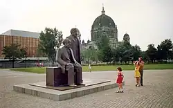 ![]() Marx-Engels Forum in 1986. In the background Palast der Republik and the Berliner Dom. | |