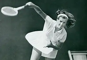 In 1968, she won the US Open mixed doubles with Peter Curtis, defeating Tory Fretz and Gerry Perry in straight sets[5] In 1969, she won the singles title at the Surrey Grass Court Championships, defeating Judy Tegart in three sets. She won the doubles title at the 1971 British Hard Court Championships with Françoise Dürr, defeating Margaret Court and Evonne Goolagong in the final.[6]