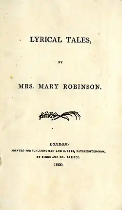 - Lyrical Tales, by Mrs. Mary Robinson (London: T. N. Longman and O. Rees, 1800) Digital Edition