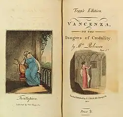 - Vancenza; or, the Dangers of Credulity (London: Printed for the Authoress, 1792)