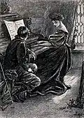 Mary Ellen Edwards worked and lived in both the 19th and early 20th centuries.[5] Due to the prevailing social climate of the time, she was not very popular among a society that viewed her art through the traditional male lens.[5] She focused more on illustrations that conveyed emotion in a social setting, and she was extremely successful at it. Furthermore, many of her works revolve around social settings with groups of people.[5] She was exceptional at illustrating emotion in her work, and her pieces are very powerful and easy to understand.[5] Unfortunately her style did not catch on among the broad population due to her status as a member of "feminine art"; her works were often viewed as "feminine", "sentimental", and "domestic": rarely equitably compared with her male counterparts.[5]