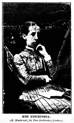 Lyschinska was born in Edinburgh,[2] and was from a Polish noble family that emigrated to Scotland in the 1830s, because of political persecution in their home country. He father worked as a doctor and had married a Scottish women who he had met in Edinburgh during his studies in medicine.[3]
