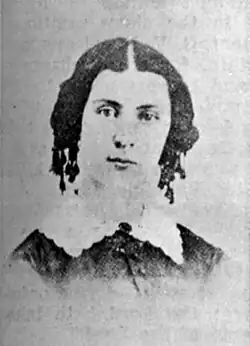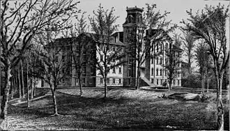 Mary Monnett Bain (Mary Monnett; September 21, 1833, in Marion County, Ohio – July 30, 1885, in Osawatomie, Miami County, Kansas), following her mother's death, came into a very large sum of money.[1] She is known for the construction of Monnett Hall in 1856, a cutting edge, Midwestern 19th-century female college, built at a time when many Ohioans still lived in log cabins and most colleges did not accept women or did not provide boarding for them if they wanted to study away from home. The college (and Mary's building - a grand Second Empire styled Victorian building) was absorbed into Ohio Wesleyan University (OWU) after a few decades, but addition upon addition made the building grow to mammoth size.[2] Monnett Hall provided the female dormitory space for all of OWUs women students for decades, until it was abandoned in the 1960s and torn down in the 1970s. Mary Monnett's donation of initial funding for the building provided generations of women with a kind of freedom she herself never enjoyed.[2]