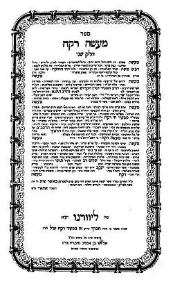 ![]() Title page of Maʽaseh Rokeaḥ, Volume 2, by Hakham Masʽoud Hai Rakkaḥ | |