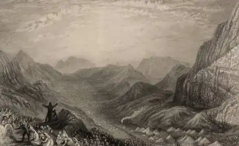 Encampment of Israelites, Mount Sinai (1836 intaglio print after J. M. W. Turner from Landscape illustrations of the Bible)