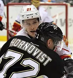 - ^ Cruickshank, Scott (2014-10-10). "Raymond hat trick leads Flames to win". Calgary Herald. p. D1.