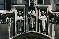 Much of the stone, plaster, and metal work in the interior of the building was designed and executed by architectural sculptor Corrado Parducci. The three figures over the main entrance were by Leo Friedlander, while the rest of the considerable architectural sculpture on the exterior was by Bill Gehrke.