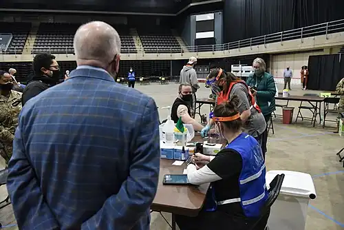 In the United States, NFL commissioner Roger Goodell offered the league's 30 stadiums as mass vaccination sites.[31] As of April 2021, NFL stadiums have administered more than 2 million doses.[32] By December 2021, more than 100,000 people had received vaccinations at Indianapolis Motor Speedway.[33]