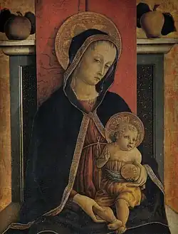 The Madonna recalls the schemes of Filippo Lippi. Compared to the Madonnas of the Paduan or Zadar period (e.g., theHuldschinsky Madonna), the figure of the Virgin is here softened by a new tenderness, which will later be found in the artist's mature works.
