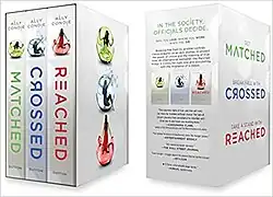 The Matched trilogy is a young adult, dystopian fiction series written by American author Ally Condie, set in a centrally governed society. The Society seems to be formed after an apocalyptical global warming event. The novel Matched was published by Dutton Penguin in November 2010 and reached number three on the Children's Chapter Books bestseller list in January.[1][2][3] Previously working with a small, Utah-based publisher (Deseret Book Co.), Condie took her manuscript to Penguin Random House, after being advised to do so from her director at Deseret Book. This helped the novel reach a national audience.[4] The Matched novel has been optioned to the Walt Disney Company for a film adaptation.[5] Foreign rights were sold to 30 countries before publication.[5][6] The second book, Crossed, was published in November 2011, and Reached, published November 2012, completed the trilogy.