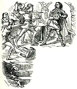 In 967, Mathgamain is called "king of Cashel", by the Annals of Ulster.[2] However he is not believed to have become king of Munster until 970 or shortly after, deposing Máel Muad mac Brain. In 967, Mathgamain defeated Ivar of Limerick in the celebrated Battle of Sulcoit, following raids by Mathgamain into Ui Fidgente territory in 964. The most common account of Mathgamain's death was that he was captured in 976 by Donnubán mac Cathail, Tigerna (Chief of the Name) of the Irish clan Uí Fidgenti, with whom the Dál gCais were vying for territory, and who were in alliance with Hiberno-Norse King Ivar of Limerick. Donnubán handed him over to his most powerful ally Máel Muad mac Brain (Mulloy, son of Brain) previous king of Munster, who had Mathgamain killed.[3]
