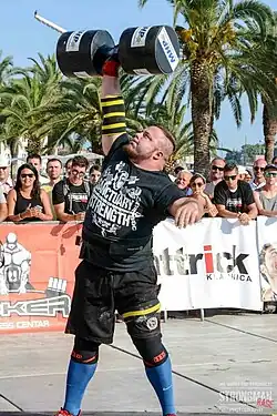 Matjaz Belsak (in Slovenian Matjaž Belšak; born 23 September 1992)[1][2] is a Slovenian professional strongman[3] and powerlifter.[4][5] Having competed in 71 International strongman competitions and winning 16 of them, Belsak is the ninth most decorated strongman in history.[6]