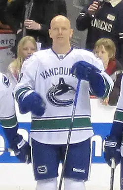 Mats Johan Sundin (Swedish: [ˈmatːs sɵnˈdiːn]; born 13 February 1971) is a Swedish former professional ice hockey player who played the majority of his career in the National Hockey League (NHL), retiring in 2009. Originally drafted first overall in 1989, Sundin played his first four seasons in the NHL with the Quebec Nordiques. He was then traded to the Toronto Maple Leafs in 1994, where he played the majority of his career, serving 11 seasons as team captain. At the end of the 2007–08 season, Sundin was the longest-serving non-North American-born captain in NHL history.[1] Sundin last played for the Vancouver Canucks in the 2008–09 season before announcing his retirement on 30 September 2009. He appeared in the Stanley Cup playoffs in 10 of his 18 seasons.