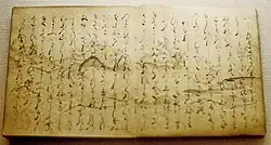 An abbreviated passage briefly describes the journey home, Shōshō's reunion with his mother at Matsura.[11] She rushes to the Hatsuse Temple and performs the ritual ordered by Princess Hua-yang, who is reborn.[11] Their love is renewed, and while Shōshō has not forgotten the empress, he is no longer interested in Princess Kannabi, who is confused by his lack of affection for her.[11] The empress, however, reappears, arousing the jealousy of Hua-yang.[11] The conflict between the three women in Shōshō's life is not resolved, as Teika chose to end the story at this point.[11]