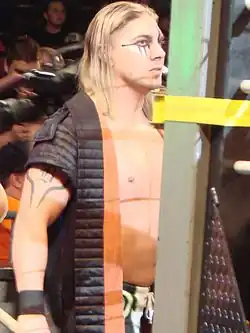 After being trained at Shawn Michaels' Texas Wrestling Academy, Bentley competed in Japan for the Frontier Martial-Arts Wrestling promotion.[1] He also briefly worked for Extreme Championship Wrestling (ECW) from October 2000 to the final show of the promotion on January 13, 2001.[1] After ECW closed Bentley returned to Japan, where he wrestled under a mask as Omega Verfian.[1] During this time he also made appearances for both World Wrestling Entertainment and World Championship Wrestling in dark matches. He also worked as a jobber on WWE's programs Velocity and Sunday Night Heat.[1] He is also a former Ring of Honor (ROH) wrestler, with his breakout match occurring against Paul London at the Unscripted event in September 2002, that concluded with London hitting the shooting star press off a ladder.[5] ROH later described the match as a "match of the year candidate".[5] He was also a member of The Group faction in ROH, with Samoa Joe and C. W. Anderson, but they were forced to disband after losing to The Prophecy at Night of Grudges on June 14, 2003.[1][6] He later wrestled for Major League Wrestling, where he was managed by Francine, and returned to Japan to compete for Zero-One Wrestling.[1]