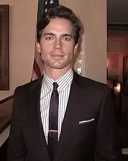 2009 marked a significant turning point in Bomer's career as he starred as the con artist Neal Caffrey in the police procedural drama series White Collar.[35][36] White Collar premiered on August 23, 2009, on USA Network and was watched by more than 5.40 million people.[37] The show was received with popular and critical acclaim. Mary McNamara of the Los Angeles Times wrote: "terrific acting, crackling dialogue and geek-hip crime are not the only things that make this the most electric drama to premiere this fall."[38] She also liked the performance of the two leads together saying they "are so easy" and "perfect together".[38] Bomer won a People's Choice Award at the 2015 ceremony.[39] Additionally, Bomer produced 19 episodes of White Collar along with costar Tim DeKay.
