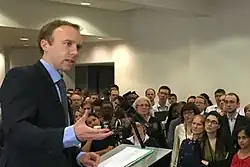In 2011, Hancock became a member of the Free Enterprise Group, a group of Thatcherite Conservatives co-founded by Liz Truss. In January 2013, he was accused of dishonesty by Daybreak presenter, Matt Barbet, after claiming he had been excluded from a discussion about apprentices after turning up "just 30 seconds late".[16] Hancock acknowledged on social media that he was running late, but said he turned up ahead of time for the interview and was unfairly blocked from going on set by producers.[17] Barbet said Hancock knew he was "much more than a minute late" and he should have arrived half an hour beforehand to prepare for the interview.[16]