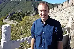 Hancock attended Farndon County Primary School, in Farndon, Cheshire, and then was privately educated at the King's School, Chester.[2] He took A-levels in Maths, Physics, Computing, and Economics.[3] He later studied computing at the further education college, West Cheshire College.[6][7] Hancock then studied at the University of Oxford where he was an undergraduate at Exeter College, and graduated with a first class degree in Philosophy, Politics and Economics (PPE). He later earned a Master of Philosophy degree in Economics from the University of Cambridge, where he was a postgraduate student at Christ's College.[7][8] He was diagnosed with dyslexia at university.[9] Hancock became a member of the Conservative Party in 1999.[10]