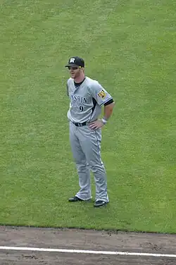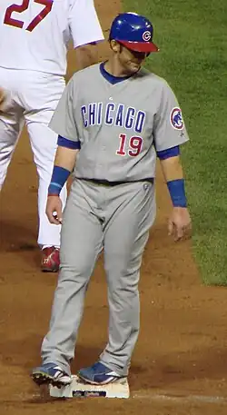 He started 2005 with the Double-A West Tenn Diamond Jaxx, but was called up to the major leagues for the first time on July 8, along with Adam Greenberg, to replace the struggling Corey Patterson and Jason Dubois.[6] On the same day, he went 2-for-2 with a walk and a sacrifice fly against the Florida Marlins in his major league debut.[7] He continued his success in the majors over the rest of the season, hitting .321 with two stolen bases, seven home runs, and an on-base percentage of .386 in 51 games in 2005.