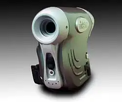 The Mattel Vidster is a digital tapeless camcorder that was marketed as a children's toy and sold around 2005. It features a 1.1-inch (28 mm) LCD display, a 2x digital zoom, and records into AVI 320x240 video files encoded with the M-JPEG codec at 15 frames per second, with 22 kHz monaural sound. It also takes still photos with 1.3 megapixel resolution.