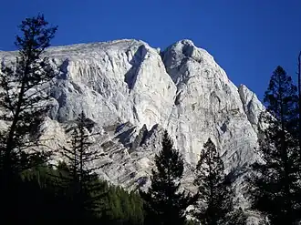 Matterhorn is located 10 miles south-southwest of Joseph, Oregon, in the Wallowa Mountains. It is set within the Eagle Cap Wilderness on land managed by Wallowa–Whitman National Forest.[2] The peak is situated 1.8 mile west-northwest of Craig Mountain, 1.5 mile west of Ice Lake and 1.24 mile south of line parent Sacajawea Peak. The peak ranks as the second-highest peak in the Wallowa Mountains,[1] and the seventh-highest summit in Oregon.[3] It was once considered to be the highest in the Wallowas, before Sacajawea Peak was determined to be a few feet higher.[5] Precipitation runoff from the mountain drains west into Hurricane Creek and east into Adam Creek, both of which are tributaries of the Wallowa River. Topographic relief is significant as the summit rises over 3,200 feet (980 meters) above Hurricane Creek in less than one mile. The peak is composed of limestone of the Martin Bridge Formation.[1] This landform's toponym has been officially adopted by the United States Board on Geographic Names.[4] It is so named because of a likeness to the famous Matterhorn on the Swiss–Italian border, and the name has been in use since at least 1926.[6]