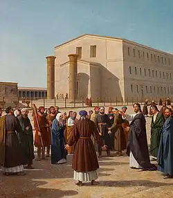 ![]() "Dispute of Jesus and the Pharisees" by Christoffer Wilhelm Eckersberg (1843). | |