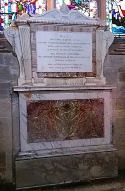 According to Arthur Collins' Peerage of England (1756) he married Penelope Compton, a daughter of Hatton Compton (d.1741) of Grendon Hall in Northamptonshire, Lieutenant of the Tower of London and a grandson of Spencer Compton, 2nd Earl of Northampton.[2] However the Dictionary of National Biography (1885-1900) states that he was unmarried. He died at his house in Kensington Square, 23 November 1770, aged eighty-seven years and three months, having been active and healthy until before his death. He was buried in his cathedral of Ely, and a monument was erected to his memory by his chaplain and executor, Dr. Warren.