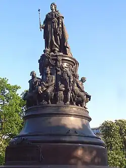 Chizhov's studies did not prevent him from performing a variety of private commissions and work for Mikeshin, including drawings for a model of the St. Petersburg monument to Catherine the Great and the fashioning of parts of this colossal monument to the empress.