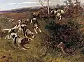 Earl became famous during the Victorian Era, a time when women were not expected to make their living at painting. Nevertheless, she developed a select clientele, that included members of the British royal family, such as Queen Victoria and Queen Alexandra.[3][2] Although evidently extremely successful in England, Earl felt that the world she knew had been destroyed by World War I and she emigrated to New York City in 1916.[1] By this time her work had received wide international recognition and her popular images were published in a number of books and in print form.[1] The Sportsman's Year featured twelve of Earl's works as engravings. Earl died in New York in 1943 and is buried at Sleepy Hollow Cemetery in Sleepy Hollow, New York.