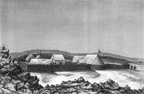 Sketch of Wilkes' campsite by ship's artist Alfred Thomas Agate