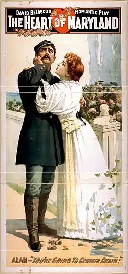 In 1896, Barrymore became the first major Broadway star to headline in vaudeville—a brave foray at the time. During his career, Maurice Barrymore played opposite many of the reigning female stars of the time including Helena Modjeska, Mrs. Fiske, Mrs. Leslie Carter, Olga Nethersole, Lillian Russell, and Lily Langtry. In the 1895 theater season on Broadway he co-starred with Mrs. Leslie Carter in The Heart of Maryland. In the 1899 season on Broadway he had a success playing opposite Mrs. Fiske in the part of Rawdon Crawley in Becky Sharp.[12] This play was based on a character from William Thackeray's novel Vanity Fair. Becky Sharp was Barrymore's last Broadway success. In 1900, Barrymore toured the U.S. with a play called The Battle of the Strong co-starring a young Holbrook Blinn. In the company of this play was a five-year-old child actress, Blanche Sweet, who grew up to be a silent movie actress and acted with Lionel in his first Biograph film. When the Battle of the Strong company stopped in Louisville, Kentucky Barrymore sat for his last posed photograph. Also during this time he got to spend time with his son John, who was now in his late teens; the two lived together at in Fort Lee, New Jersey. Lionel and Ethel were on the road in theater companies, having already started their careers.