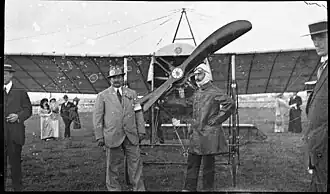 The party arrived in Sydney early in April, and spent the first fortnight assembling the Bleriot. His first flying display was given at Victoria Park, Zetland, Sydney, on 19 April 1914,[6] followed by a display at Newcastle on 25 April.[7] He was immediately received in the highest circles of Australian society, being officially welcomed to Sydney by the Lord Mayor on 28 April.[8]