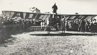 Lebbeus Hordern enlisted the services of Guillaux and his team to assemble and test fly the aircraft, and on May 8, 1914, Maurice Guillaux flew the Farman for the first time.[11] Over the next few days he made many flights carrying passengers including the owner of the aircraft and Miss Louise Carbasse, then a 19-year-old Australian actress. After the war, she became a well-known Hollywood actress under the name of Louise Lovely.[12]
