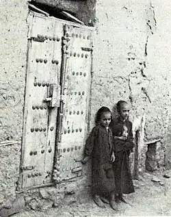 Those Jews who survived, who returned either to Sana'a or to the other towns and villages, were mostly ill from being exposed to the changes in climate and from the poor quality of drinking water. In Sana'a, they were required to relinquish their ownership over their houses and fields within the city's wall, in the neighborhood of al-Sā'ilah, and were directed to build humble abodes in a new area outside of the city's walls, in a place then known as the "hyena's field" (Ar. Qāʻ al-simaʻ), or what later became known as Qāʻ al-Yahud (the Jewish Quarter).[30] This place attracted other migrant Jews from the other towns and villages from which they had been expelled and soon grew into a suburb, situate about one kilometer beyond the walls which then existed on the extreme west-side of the city. The first synagogue to be built in this place was the Alsheikh synagogue, which housed the most prized possessions: Torah scrolls and old, handwritten manuscripts.[31] Jewish houses were made "low, seldom more than two storeys, and built of sun-baked brick dressed with mud."[32] Today, the place is called Qāʻ al-ʻUlufi (Ar. قاع العلفي).[33] The lands upon which they built the new Jewish Quarter were lands provided by the king, but the Jews were later required to pay a monthly tenancy fee for the land, and which money accrued to the Muslim Waqf (mortmain land) for the upkeep of their own places of worship. Between the new Jewish Quarter and the city walls was a suburb full of gardens called Bi'r alʻAzab (the Single's Well), being once the Turkish Quarter.[34] In subsequent years, the Jewish Quarter was also enclosed by a wall.[35]