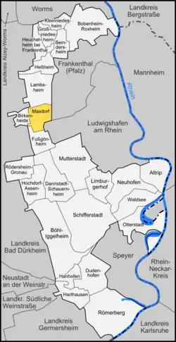 Location of Maxdorf within Rhein-Pfalz-Kreis district ![]() | |