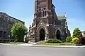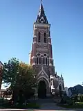 Construction began in the 1830s and was finished according to Lille architect Louis Cordonnier's Gothic-style plans (1887-1890). It is 72 meters long and its bell tower is 75 meters high with a 3-bell carillon. Inside, the large nave culminates at 20 meters under the keystone, and the two aisles at 8 meters. The transept ends with two chapels, the left-side is dedicated to Our Lady of the Rosary while the right-side holds a shrine dedicated to Saint-Maxellende herself. It is lit by two rosettes, each with 4,600 pieces of glass laid around 1921.[1]