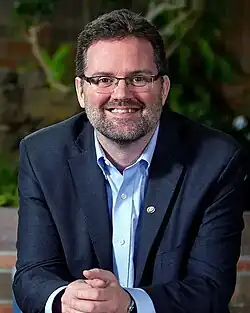 Maxime Pedneaud-Jobin (born 1968) is a Canadian politician, who was elected mayor of Gatineau in the city's 2013 municipal election[3] under the Action Gatineau banner. Previously a city councillor for the city's Buckingham District, he defeated incumbent mayor Marc Bureau in what was widely seen as a surprise victory.[4]