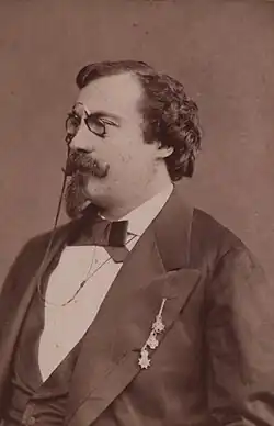 Steiner was born in Ofen, now a part of Budapest in Hungary, then a part of the Austrian Empire. In the early 1850s, he began work in the stage crew of the theatre in Temeswar (now in Romania). In 1854,[2] he was engaged by the theater director Friedrich Strampfer as an actor in the German-language theater. He continued to act in that theater and others in the region till 1862, gaining both acting and directing experience,[3] when he followed Strampfer to Vienna, where Steiner became secretary (an executive role) in the Theater an der Wien. Strampfer gave him considerable leeway to develop his own career, and in August 1869 Steiner became manager after Strampfer stepped down. Till 1875 Steiner was co-manager with the actress and singer Marie Geistinger; together, they "set a tone for the repertoire that lasted until the end of the century,"[4] despite criticism from the conservative press.[5] When Geistinger left for Berlin, Steiner led the theater on his own, with help from his sons Franz and Gabor, till his death in 1880. Steiner's business acuity helped the Theater stay open after the stock market crash in 1873,[6] but he did lose control for several months in 1877 due to another set of financial difficulties; he gained control again later in the same year with the help of friends and other backers.[7]