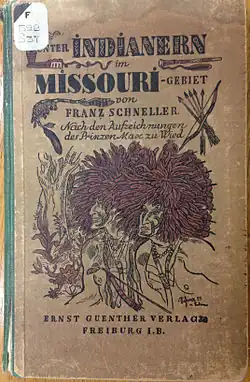 In 1832 he travelled to the Great Plains region of the United States, accompanied by the Swiss painter Karl Bodmer on a journey up the Missouri River, and wrote Reise in das Innere Nord-Amerikas (1840) on his return. During his travels, he was a sympathetic recorder of the cultures of many of the Native American tribes he encountered, notably the Mandan and the Hidatsa, who lived in settled villages on the banks of the Missouri, but also such nomadic peoples as the Sioux, Assiniboine, Plains Cree, Gros Ventres and Blackfoot.[1] Bodmer's watercolour paintings of individuals, artefacts and customs among the Indians are acknowledged as among the most accurate and informative ever made. Many were adapted as hand-coloured engravings to illustrate the publication of 1840.